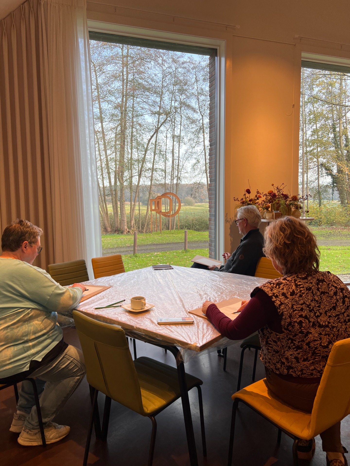 Vorig jaar wandelde ik met mijn gezin in het Reestdal, het kerkenpad. Na afloop liepen we de Reestkerk in voor de expositie. De aanbouw bij de kerk vond ik verrassend ruim sereen warm en licht met grote ramen gericht op het prachtige landschap rondom.